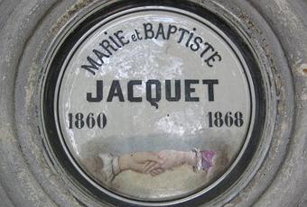 Placa en la tumba de Jean Batiste Jacquet de la logia Ars Reunis de ChaorsLes dejo con toda una colección de estrechamientos de manos en el campo funerario: