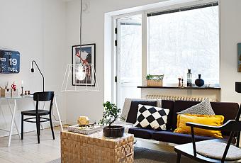 Pequeñito, pero perfecto este estudio sueco ¿no os parece? Decorado con muebles muy ligeros en blanco y negro es el toque de amarillo usado con mucha moderación lo que realmente llama la atención. La distribución obliga a tener la cama en el salón, pero queda discretamente recogida contra la pared y a modo de alcoba, al poner unos armarios hasta el techo delante, otra gran idea para aprovechar el espacio y conseguir un buen lugar de almacenaje. Una vivienda excelente para una persona. Feliz martes!!