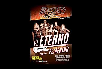 El Eterno Femenino es una nueva formación valenciana que llega para crearse y que ha sido creada tras la disolución de la formación Butterfly. La banda se presenta con una imagen renovada, musicalmente ahora se acercan más hacia los sonidos tecnificados. El grupo está creado por Mayka Olivares (voz y guitarra), Geles Piquer (bajo), Pau Sanmartín (guitarra), Santi Gallego (teclados y programación), Julio Molina (batería) y Ani Olivares (coros). Será un show en eléctrico en la Imágenes Club.
