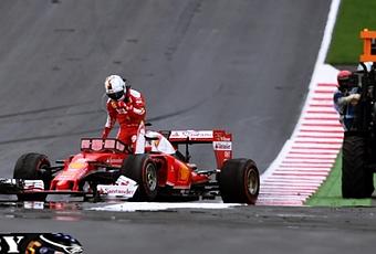 El fallo provocó que Vettel perdiera el control del Ferrari y se fuera contra el muro obligándolo a abandonar la carrera.