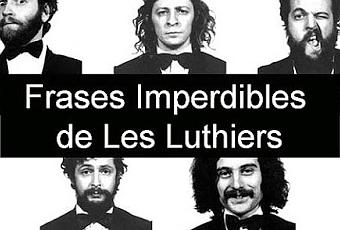 1. El amor eterno dura aproximadamente 3 meses.2. No te metas en el mundo de las drogas... Ya somos muchos y hay poca.3. Todo tiempo pasado fue anterior.4. Tener la conciencia limpia es síntoma de mala memoria.5. El que nace pobre y feo tiene grandes posibilidades de que, al crecer, desarrolle ambas condiciones.6. Los honestos son inadaptados sociales.7. El que quiere celeste, que mezcle azul y blanco.8. Pez que lucha contra la corriente, muere electrocutado.9. La esclavitud no se abolió, se cambió a 8 horas diarias.10. ¡¡¡Si la montaña viene hacia ti... corre!!! ¡¡¡Es un derrumbe!!!11. Lo importante no es ganar, sino hacer perder al otro.12. No soy un completo inútil... Por lo menos sirvo de mal ejemplo.13. La droga te vuelve bruto.14. Si no eres parte de la solución, eres parte del problema.15. Errar es humano... pero echarle la culpa a otro es más humano todavía.16. El que nace pa' 'ta mal, nunca 'ta bien.17. Lo importante no es saber, es tener el teléfono del que sabe.18. Yo no sufro de locura... la disfruto a cada minuto.19. Es bueno dejar el trago, lo malo es no acordarse dónde.20. El dinero no hace la felicidad.... ¡¡¡La compra hecha!!!21. Una mujer me arrastró a la bebida... Y nunca tuve la cortesía de darle las gracias.22. Si tu novia perjudica tu estudio, deja el estudio y perjudica a tu novia.23. La inteligencia me persigue... pero yo soy más rápido.24. Huye de las tentaciones... despacio, para que puedan alcanzarte.25. La verdad absoluta no existe; y esto es absolutamente cierto.26. Hay un mundo mejor, ¡pero es carísimo!27. Ningún tonto se queja de serlo. No les debe ir tan mal.28. Estudiar es desconfiar de la inteligencia del compañero de al lado.29. La mujer que no tiene suerte con los hombres, no sabe la suerte que tiene.30. No hay mujer fea, sino belleza rara.31. La pereza es la madre de todos los vicios. Y como madre... hay que respetarla.32. Si un pajarito te dice algo... debes estar loco, pues los pájaros no hablan.33. En cada madre hay una suegra en potencia.34. Lo importante es el dinero, la salud va y viene.35. Trabajar nunca mató a nadie... Pero ¿para qué arriesgarse?36. No te tomes la vida en serio, al fin y al cabo, no saldrás vivo de ella.37. Felices los que nada esperan, porque nunca serán defraudados.38. El alcohol mata lentamente... No importa, no tengo prisa.39. La confusión esta clarísima.40. Mátate estudiando y serás un cadáver culto.41. Lo triste no es ir al cementerio, sino quedarse.42. Hay dos palabras que te abrirán muchas puertas: “Tire” y “Empuje”.43. ¿Para qué tomar y manejar si puedes fumar y volar??44. Dios mío, dame paciencia... ¡¡pero dámela YAAAA!!45. De cada 10 personas que miran televisión, cinco son la mitad.Pues bien, estas frases NO SON de Les Luthiers. Sin querer quitar el mérito a dichas frases, ninguna, excepto la última, son de Les Luthiers. Se trata de información falsa que circula por internet, que incluso llegó a los mismísimos Luthiers, con lo que lógicamente quedaron “impresionados” de que dijeran que determinadas frases eran suyas cuando realmente no lo son.Incluso hay alguien que ha llegado más lejos y ha hecho una presentación Power Point tomando algunas de esas frases y combinándolas con fotos de Les Luthiers.