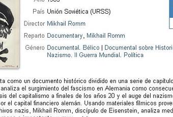 Obyknovennyy fashizm (El Fascismo Cotidiano, 1965) es un extraño y desconocido documental soviético sobre los orígenes, desarrollo y ¿Futuro? Del Nacionalsocialismo alemán (así como también ofrece una perspectiva más amplia del fascismo en general). La película documental, dirigida por Mikhail Romm (quien fue discípulo de Eisenstein) cuenta con su propia voz como narrador, que se desliza en numerosas ocasiones entre la ironía y la el humor negro pero sin abandonar nunca la importancia del tema tratado.