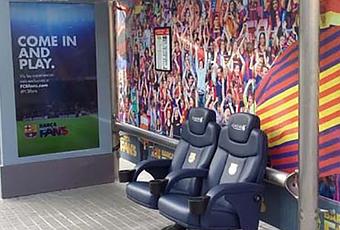 ¿Te imaginas llegar a una parada de autobús y ver que la han transformado en el banquillo de tu equipo? Con imágenes de la afición gritando por detrás y asientos como en los que se sientan tus jugadores preferidos.Pues esto es lo que ha hecho el club de fútbol Barcelona en Hospitalet de Llobregat (Barcelona). Para comenzar ha transformado los asientos de espera en unos iguales a los del banquillo, ha colocado una imagen de la afición detrás y ha instalado una pantalla para simular un partido.