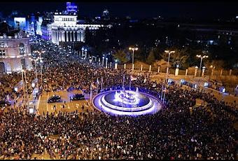 La Comisión 8M, convocante de las huelgas feministas de 2018 y 2019, arrancó bajo el lema “Somos el grito necesario. El feminismo lo está cambiando todo”. Mujeres, y también hombres, a título individual, pero también colectivos y organizaciones marcharon a ritmo de batucada con gritos como “Madrid será la tumba del machismo”, “aquí estamos las feministas” o “la ley de extranjería mata gente cada día”. El color morado, feminista, se extendió por doquier todas partes, en pañuelos, abrigos, bufandas o en pintadas en la cara de las asistentes. Incluso en algunos programas televisivos.