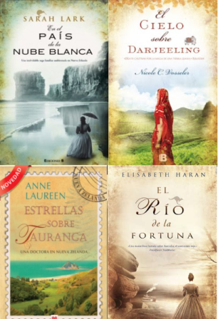 Las cuatro novelas de la imagen tienen mucho en común: están ambientadas en un lugar exótico, sus argumentos prometen aventuras y romance, son fáciles de leer, tienen una extensión considerable y sus autoras son de Alemania. ¿Casualidad? No, estamos delante de un nuevo fenómeno literario, el de las "landscape novels" (literalmente, "novelas de paisaje"), término que acuña Ediciones B en su último boletín de novedades para describirlas.En efecto, esta editorial es la máxima responsable del reciente apogeo de este género en España. Tras el éxito de En el país de la nube blanca y su continuación, La canción de los maoríes, ha apostado por dos novelas que no duda en comparar con las de Sarah Lark: El cielo sobre Darjeeling y El río de la fortuna, que se ambientan en la India y Australia, respectivamente. El diseño de las cubiertas es muy similar y no da lugar a engaños. Al parecer, estas escritoras fueron creadas expresamente por una editorial alemana para aprovechar el tirón de las "novelas de paisajes". No sería raro que en los próximos meses se publicaran más títulos similares, pues.