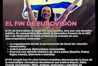 Desde la Asamblea de la UER del 4 de diciembre de 2025, que blindó la permanencia de Israel sin votación democrática, el festival ha saltado por los aires: cinco países se han retirado (España, Países Bajos, Irlanda, Eslovenia e Islandia), RTVE ha roto tras 64 años, se han confirmado presiones diplomáticas, artistas históricos han devuelto sus trofeos y plantillas de televisiones públicas y sindicatos han señalado la farsa.