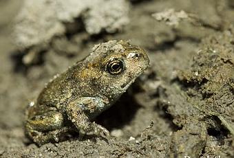 Metamorfo de sapo corredor (Bufo calamita)A mediados de julio la mayoría de las charcas de montaña se encuentran completamente secas, aunque hay algunas que matenienen algo de agua gracias a las últimas lluvias caídas hace unas semanas. La subida de las temperaturas ha acelerado el desarrollo larvario y el barro húmedo del fondo de lo hace unos días era una charca repleta de renacuajos está ahora cubierto de pequeñas ranas y sapos en miniatura que corren y saltan de un lado a otro.