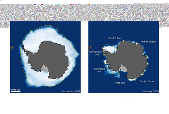 Las siguientes imágenes corresponden a la cantidad de hielo Antártico en el año 1999-2000 y el año 2009-2020.