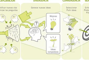 Como indica su nombre, es la fase más creativa en la que los participantes sugieren todas las ideas que les parecen interesantes para innovar. Aunque el resultado final va a depender también de otros factores, a más cantidad de ideas entren al embudo, más probable es que se consiga calidad al final del funnel.