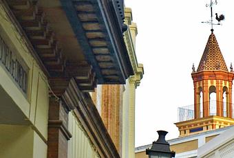 Es muy común en la arquitectura religiosa sevillana culminar las torre son una cruz y una veleta o al menos uno de los dos elementos. Estas veletas, en muchas ocasiones tienen algún elemento de representativo de la figura de un animal. Así tenemos que, por ejemplo, en la iglesia de San Vicente, hay una paloma; en la iglesia de Omnium Sanctorum hay un caballo; en la iglesia de Santiago hay otro caballo montado por caballero.
