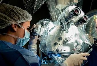 Con el flamante microscopio, van a reducir los riesgos durante la intervención