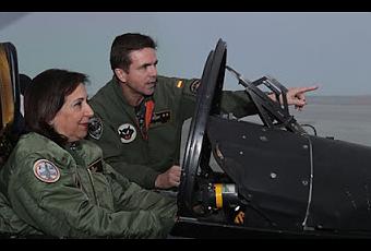 La ministra del Ejército montada en un Eurofighter.
