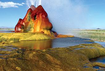 Curioso por lo multicolor este géiser llamado Fly y situado en el Estado de Nevada en el interior de una finca privada. No es un géiser natural, fue provocado en 1916 al perforarse un pozo el cual funcionó con normalidad hasta la década de 1960 cuando una fuente geotermal perforó su pared. Diferentes minerales salen disueltos por el géiser siendo el dióxido de azufre el que le confiere esa estupenda coloración. La primera imagen es de la Wikipedia y las siguientes son de los usuarios de Flickr Michael Flick y eaross 1961. Clic para ampliar.