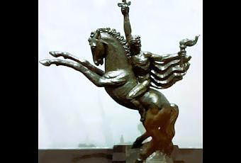 Esta escultura había sido concebida para un Bolívar sin su uniforme de General, de torso desnudo, montado en un caballo rampante; se trata de una cabeza de alrededor de tres metros de altura, que representa al Libertador Simón Bolívar. El rostro se presenta mirando hacia la izquierda, con la boca entreabierta, las cejas elevadas y el cabello ondulante. Si bien no es la representación tradicional y ceremonial del héroe, lo presenta de manera más idealizada, e incluso, relajada. Esta sería una pieza donde el Libertador cabalgaría desnudo, de manera tal que según Macho, se equiparaba a los semidioses griegos, Prometeo en concreto, levantando una antorcha para robar el fuego de los dioses y dársela a los humanos.