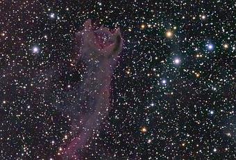 Este paisaje celeste meridional muestra el tenue y en cierto modo amenazador glóbulo cometario CG4. A unos 1.300 años luz de la Tierra en la constelación Puppis, el jefe de esta nube tiene unos 1,5 años luz de diámetro y la cola unos 8 años luz de largo. Es, pues, mucho más grande que los cometas del Sistema Solar a los que se parece.