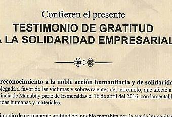 La Corporación Ecuatoriana de Aluminio S.A CEDAL recibió de parte del Gobierno Provincial de Manabí, un reconocimiento por la noble acción humanitaria desplegada en favor de las víctimas y sobrevivientes del terremoto del pasado 16 de abril, que afectó a las provincias de Manabí y Esmeraldas.