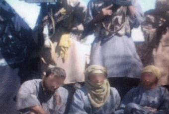 Como se puede ver en la imagen, sacada del vídeo enviado, los tres cooperantes se encentran rodeados por otros tres secuestradores.