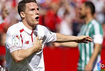 Ayer, en el Derbi Sevillano, no faltó a su cita con un remate de cabeza implacable para Antonio Adán.