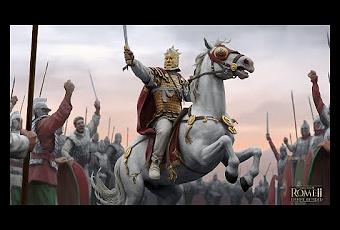 Aureliano con la máscara de Sol Invictus guiando a sus legiones