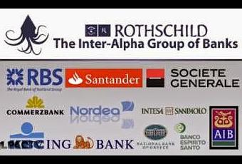 Parecería que N. M. Rothschild, el brazo londinense de la infame familia bancaria veneciana, va a ser el encargado de proteger a los quebrados bancos del grupo Inter Alfa de la catástrofe que tanto hicieron para crear. Además del AIB, ha colaborado para arreglar el rescate de otros cuatro bancos del Inter Alfa: ING de Holanda, KBC de Bélgica, Nordea de Escandinavia, y Societé Generale de Francia. Lord Miner, ex miembro de la junta directiva de N. M. Rothschild, fue asignado para que supervisara los bancos —incluyendo el banco estrella del Inter Alfa, el Banco Real de Escocia— nacionalizado por el gobierno británico en una de las etapas anteriores del desplome económico sistémico.También tenemos fuertes sospechas de que Rothschild usó su influencia para hacer que el Banco Central Europeo le prestara cantidades significativas de dinero a un banco igual de quebrado, aunque no lo hayan admitido, el Banco Santander. Como si esto no fuera suficiente, cuatro de los bancos del Inter-Alfa —RBS, Santander, Societé Generalé e ING— recibieron directamente dinero de los contribuyentes estadounidenses a través del mecanismo corrupto de "rescates bajo cuerda" con el cual rescataron a la aseguradora AIG, y un quinto recipiente, el Dresdner, fue comprado por el Commerzbank del grupo Inter-Alfa aproximadamente al mismo tiempo. Ayuda tener amigos del bajo mundo en lugares acomodados, especialmente cuando se está irremediablemente insolvente.