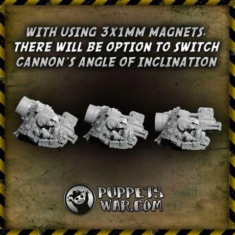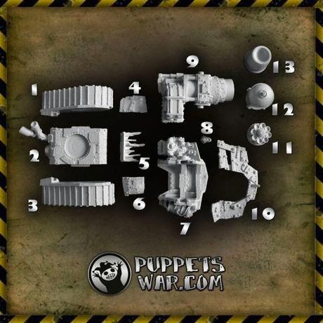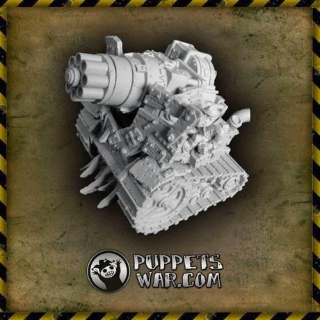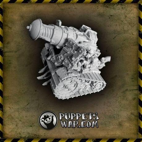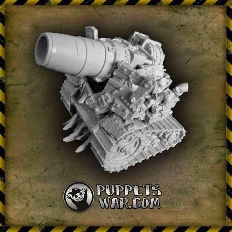 Puppets War,la marca polca de piezas y figuras alternativas en resina encadena un nuevo lanzamiento múltiple con la salida la mercado del "Gustavus",una pieza de artillería pesada auto-propulsada pensada para los Orkoz.Su nombre viene de en honor a esta otra pieza de artillería histórica,la mas grande usada hasta la fecha,aunque no es de lejos tan masiva(Se parece un poco mas a esta otra,en mi opinión).Diseñado y esculpido por la gente de Puppets War tenemos un set bastante interesante de resina,magentizable de salida, para montar el Gustavus y cualquiera de sus variantes de armamento(Que son la básica,que es como un mortero y las otras tres que van colocadas en la boca del arma,fácilmente reemplazables e intercambiables por lo que se ve en las imágenes).