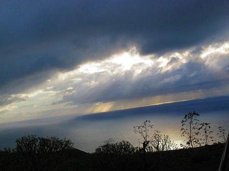Y así fue como pudimos contemplar desde lo alto del acantilado una preciosa puesta de sol. Una vez anochecido, regresamos por la costa de Frontera y El Golfo hasta el Parador, pues nos habían advertido que debido a los terremotos cerraban el túnel a las siete y media de la tarde. La opción al túnel supone casi una hora más de carretera cruzando una escarpada montaña, de noche y con lluvia y niebla. No nos apetecía mucho correr ese riesgo y además ya teníamos ganas de llegar al Parador.