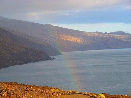 Esta bella carretera termina en el increíble paseo de las Sabinas. Pero antes quisimos bajar hasta el Faro de Orchila y el Meridiano Cero, lugar en el que antiguamente (hasta 1492 con el descubrimiento de América) se pensaba que acaba el mundo. Es el punto más occidental de Europa. Y de ahí que a la isla del Hierro se la conozca como la Isla del Fin del Mundo. Fue aquí donde vimos el primero de todos los arcos iris que veríamos durante el resto del fin de semana. El Hierro es la isla de los contrastes, pero también de la luz y sus efectos mágicos!
