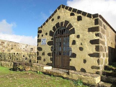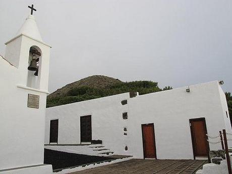 Y para terminar, con un precioso día de domingo, fuimos a otro de los miradores que nos quedaban por ver. Y fue como viajar de golpe a otra isla, Irlanda. El mirador de Jinama. El rojo intenso de los volcanes del horizonte contrasta con el verde verdísimo de las praderas y mesetas. Las ovejas pastan y nosotros nos acercamos a otro acantilado de más de 1000 metros, sin saberlo…Primero nos sorprende la Ermita de la Caridad de construcción típica herreña y después…