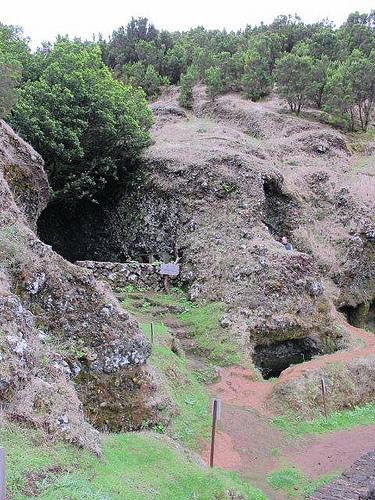 El árbol santo de Garoe tenía carácter sagrado por los aborígenes del Hierro porque sus hojas emanaban agua dulce que ellos almacenaban en albercas alrededor del árbol. En esta fotografía pueden verse las albercas y pequeños embalses donde se acumula desde entonces el agua, que no es otra cosa que la condensación del agua del aliso. Cuenta la leyenda que cuando los conquistadores castellanos llegaron a la isla, los bimbaches ocultaron la ubicación del árbol sagrado con la esperanza de que al llegar la época de sequía los conquistadores se fueran, ya que era el único agua potable del lugar. Sin embargo una joven guanche se enamoró de un conquistador y le reveló el secreto. Su pueblo al enterarse de la traición la sacrificó tirándola por uno de los altísimos acantilados de la isla. Al parecer el árbol original era un tilo que murió a consecuencia de un gran huracán en 1.604. Pero no se volvió a plantar otro tilo hasta 1.949. (En internet he leído que es un laurel, pero a nosotros el guía nos dijo que era otro tilo)