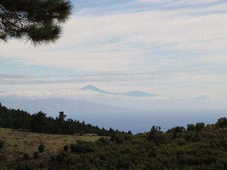 Desde el mar subinos a El Mirador de Garoe, con un paisaje que una vez más ha cambiado, del escarpado acantilado volcánico a verdes laderas. Incluso nos regaló una bonita vista del Teide entre sus pinos!