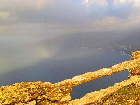 Desde el Sabinar hay un paseo hacia el Mirador de Bascos. Si todos los miradores y acantilados de la isla son absolutamente vertiginosos, el de Bascos probablemente sea el más espectacular. Cae en picado sobre la playa de Arenas Blancas. Dicen que en los días despejados se tiene una increíble vista sobre todo El Golfo, Frontera y toda la costa, pero no tuvimos esa suerte. Sin embargo los mágicos y misteriosos juegos de luz de la isla nos deleitaron con el resplandor del sol atravesando las nueves y aterrizando sobre las aguas del Atlántico. Sobre las aguas del mismísimo fin del mundo!