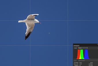En la captura podréis apreciar, aparte de la regla de los tercios, el histograma de la imagen.