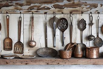 El tenedor, ese utensilio tan utilizado en nuestras cocinas, no comenzó a usarse en las viviendas italianas hasta el siglo XI. Lo que es lo mismo, 2.000 años más tarde que las tijeras. Se usaban para comer la fruta y eran de dos puntas. Con la llegada del siglo XIX se pusieron de moda los de tres puntas y no es hasta finales de ese siglo en que se adopta el de cuatro. El cuchillo para cortar la carne, de uso culinario, tiene su origen a mediados del siglo XV, hasta entonces cualquier utensilio afín servía.