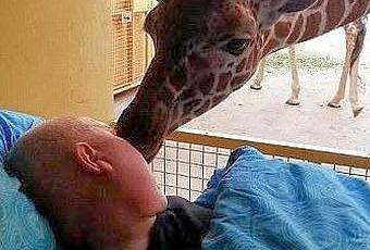 Tierno gesto el del animal al hombre que conmueve a quien lo ve. Complacer las últimas voluntades de una persona en su fase final es una de las mejores cosas que sin duda podemos hacer por ella en esta vida. Les dejo con este enlace del video cuyas imágenes hablan por sí solas. También les dejo con un video sobre la iniciativa "Ambulance Wish Foundation" que añade vida a los que la vida se apaga.http://www.elcomercio.es/videos/mas-noticias/ultima-hora/3379960200001-tierno-gesto-animal-ultimo-beso-jirafa-cuidador-enfermo-terminal-mm.html