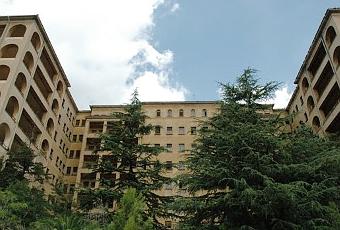 La estructura de este edificio estaba formado por dos alas, de nueve plantas cada una. Una de las alas estaba destinada principalmente a los trabajadores y a los pacientes de clase media baja, en cada habitación había 6 pacientes. La otra ala era principalmente para pacientes adinerados, donde en cada habitación habitaban 4 pacientes, poseían taquillas personalizadas, cuarto de baño propio, terraza privada e incluso un timbre para emergencias.