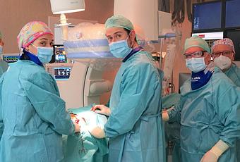 El doctor Borja Castejón, cirujano vascular de la Unidad de Angiología del doctor Pablo Gallo, explica que existen diferentes técnicas que se pueden emplear, “desde la embolización con diferentes sustancias o dispositivos para obstruir el riego y eliminar así la posibilidad de rotura, como el uso de diferentes tipos de stents, solos o en combinación con dispositivos embolizantes para tratarlos”.