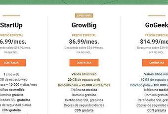 - El plan GrowBig tiene una magnífica relación calidad/precio, incluye la opción de alojar múltiples sitios web y el SuperCacher, que mejora enormemente la velocidad de la web tan importante para el posicionamiento web.