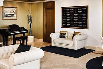 El impresionante salón de nuestra exclusiva Suite le recibirá con unas atenciones personalizadas y una champanera donde no faltará una botella de Moët &Chandon. Decorada exquisitamente con muebles elaborados por manos artesanas, el blanco es protagonista en esta suite, roto tan solo por un precioso piano negro que dibuja un rastro en el tiempo.