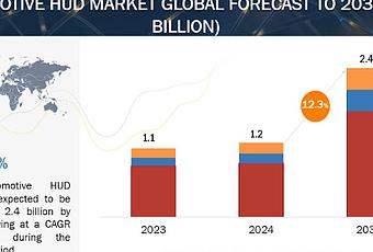 El mercado de HUD automotriz Se proyecta que el tamaño crecerá de 1200 millones de dólares en 2024 a 2400 millones de dólares en 2030, con una tasa compuesta anual del 12,3 %, según un nuevo informe de MarketsandMarkets. Las soluciones HUD para automóviles tienen una gran demanda debido al creciente énfasis en la seguridad tanto de los vehículos como de los pasajeros, el aumento constante de los segmentos de automóviles de alta gama, particularmente en los mercados emergentes, y la creciente demanda de mejores experiencias dentro del vehículo.Se espera que el segmento BEV tenga la mayor participación en el mercado mundial de HUD para automóviles.