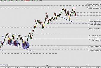 Se podría decir que, la región comprendida entre los 10.350 puntos del Ibex (objetivo bajista en la operativa publicada) y el soporte horizontal ubicado en los 9.980 puntos, conforman una importante zona de apoyo o entrada de dinero que habrá que vigilar en las próximas sesiones. En mi opinión, el rebote esta a punto de caer en nuestro mercado, luego picar en estos niveles con stop loss NO negociable en los 9.980 puntos se antoja una magnífica oportunidad viendo la ecuación rentabilidad riesgo.