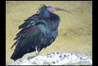 El ibis eremita (Geronticus eremita) es un ave negra y calva que se alimenta de insectos y pequeños vertebrados de prados, playas, marismas y estepas. Hace unos siglos vivía hasta en Europa central, como dan fe numerosos grabados y datos, pero actualmente se encuentra en grave peligro de extinción, quedando como única población fiable y aceptable la de Marruecos, a la que se presta gran atención. Se trataba de un ave con gran simbolismo en el antiguo Egipto, apareciendo en jeroglíficos, pero su fama y presencia se fue apagando lentamente hasta darse por extinta en más de una ocasión. En el año 20o3 la Junta de Andalucía, el Ministerio de Defensa y el Zoo de Jerez iniciaron un interesante plan de cría en cautividad y reintroducción que ya está dando éxito, porque la reproducción se ha conseguido y ver en libertad ejemplares de esta especie es posible en nuestro país ( y francamente fácil).