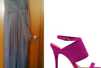 - Con fucsia, madreselva o similares. Para contrarrestar la frialdad del gris, los colores cálidos le ponen un punto amable y más de verano. Podemos seleccionar una sandalia alta (un vestido largo, casi obliga a que sea alta) en ese color, cartera de mano en plata (muy pequeñita y discreta) y una chaqueta de punto de seda, muy especial, en el mismo color que los zapatos.