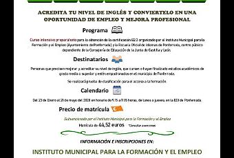 El Instituto Municipal para la Formación y el Empleo (Ayuntamiento de Ponferrada) y la Escuela Oficial de Idiomas (EOI) de Ponferrada, centro público dependiente de la Consejería de Educación de la Junta de Castilla y León ponen en marcha el Proyecto formativo “Inglés intensivo de nivel B2.2″ con una duración de 120 horas, orientado a la preparación del examen de certificación de nivel Intermedio de la EOI (B2.2) según el Marco Común Europeo de Referencia para las Lenguas (MCER).