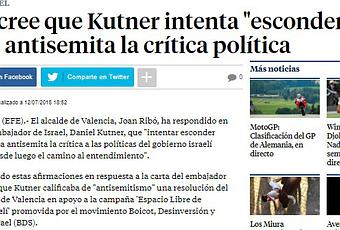En su torpe respuesta, el imputado Ribó, recurre de forma sesgada a las resoluciones de la ONU (ignorando deliberadamente que ni son de obligado cumplimiento y el carácter profundamente anti israelí de dicha organización) y acusa al embajador de intentar camuflar como antisemitismo la crítica al gobierno de Israel. De forma sonrojante, el imputado Ribó, es incapaz de condenar ni un solo acto de agresión y terrorista perpetrado por el ente palestino y sus organizaciones criminales que lo gobiernan y es incapaz de mostrar solidaridad con las víctimas israelíes de las agresiones palestinas.