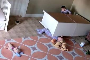 El video muestra a Bowdy Shoff salvando a Brock que se encontraba debajo del mueble. Su madre había salido por unos minutos cuando ocurrió el accidente.