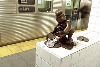 En los espacios públicos de Nueva York, como en cualquier otra de las grandes ciudades del mundo actual, abundan las estructuras impenetrables e indefinibles clasificadas como arte moderno, pero como compensación se nos brindan las deliciosas esculturas de Tom Otterness, que satirizan el mundo de los adultos desde la estética de los cuentos infantiles. Las tres primeras imágenes corresponden a la obra “Life Underground”, ubicada en la estación del metro de la calle 14, NY; la última, "The last penny", reside en una plaza de Toronto, Canadá.