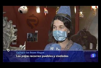 Es una foto de una joven vestida de paje de los Reyes Magos, tomada (supuestamente) del Telediario de la primera cadena de Televisión Española con un rótulo que dice: "Las pajas recorren pueblos y ciudades".
