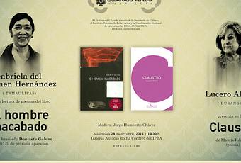El Gobierno del Estado de San Luis Potosí, a través de la Secretaría de Cultura y el Instituto Potosino de Bellas Artes, dentro del ciclo La Palabra tiene la Palabra, invitan a la presentación del libro Claustro de la escritora duranguense Lucero Alanís, y a la lectura del poemario El hombre inacabado del escritor brasileño Donizete Galvao a cargo de Gabriela Hernández.