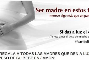 La marca Navidul, con el fin de satisfacer a las mujeres que den a luz en el Día de la Madre (mañana domingo) ha anunciado que va a regalarles el peso de sus bebés en jamón, de este modo se podrán hacer un homenaje para que disfruten de un alimento que no han consumido durante el embarazo, o en su defecto, lo han consumido poco. La marca explica que ser madre en estos tiempos merece algo más que nacer con un pan bajo el brazo, frase hecha que expresa un nacimiento con fortuna y el inicio de la prosperidad para una familia.