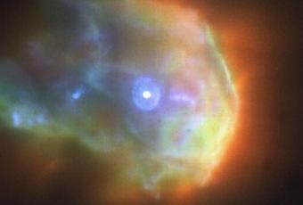 Esta imagen muestra el joven objeto estelar 244-440 en la Nebulosa de Orión observado con el Very Large Telescope (VLT) de ESO, la imagen más nítida jamás tomada de este objeto. Esa estructura magenta ondulada es un chorro de materia lanzado cerca de la estrella, pero ¿por qué tiene esa forma?